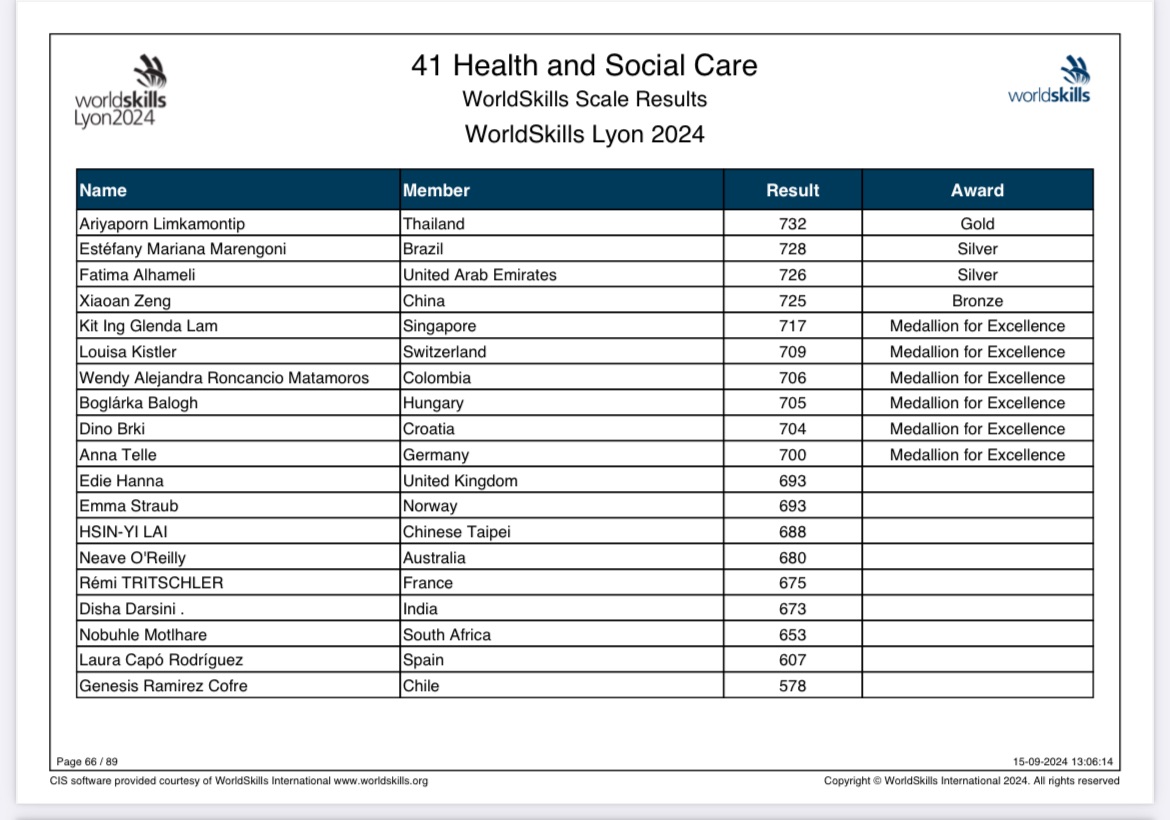 Louisa hat den 6. Rang von 19 erreicht! Medaillon of excellence- eine ausgezeichnete Leistung! Best of Europe in unserem Beruf!